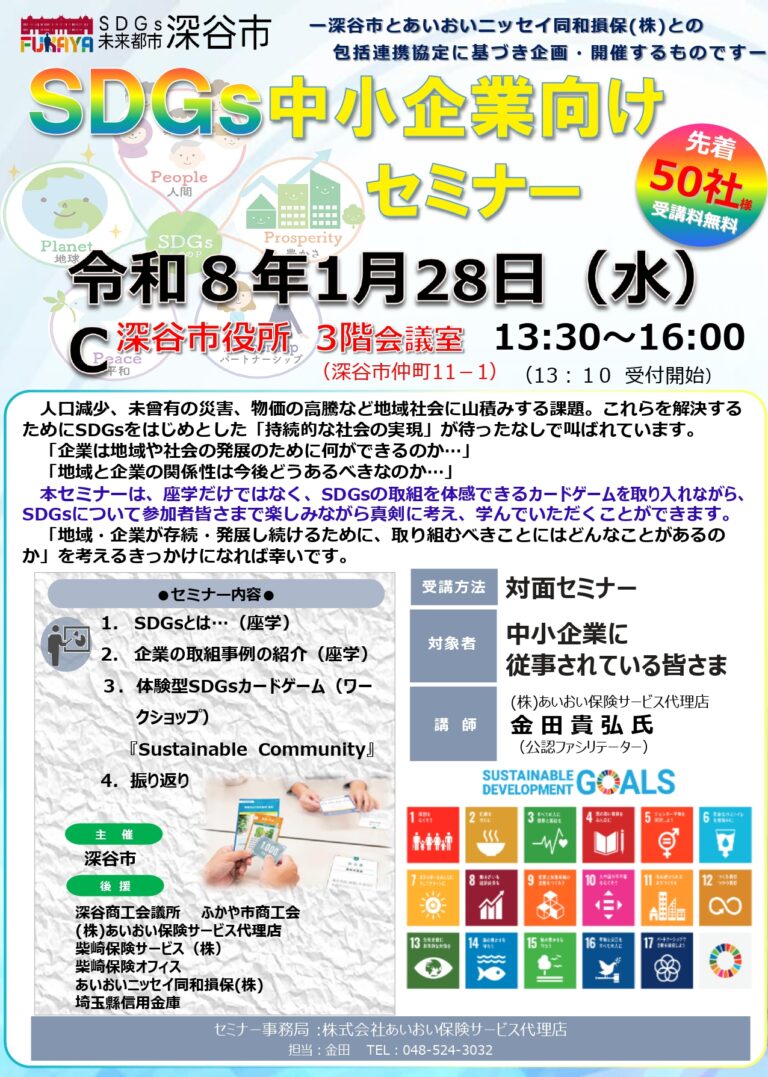 『SDGs中小企業向けセミナー』開催のお知らせ 先着50社様 受講料無料